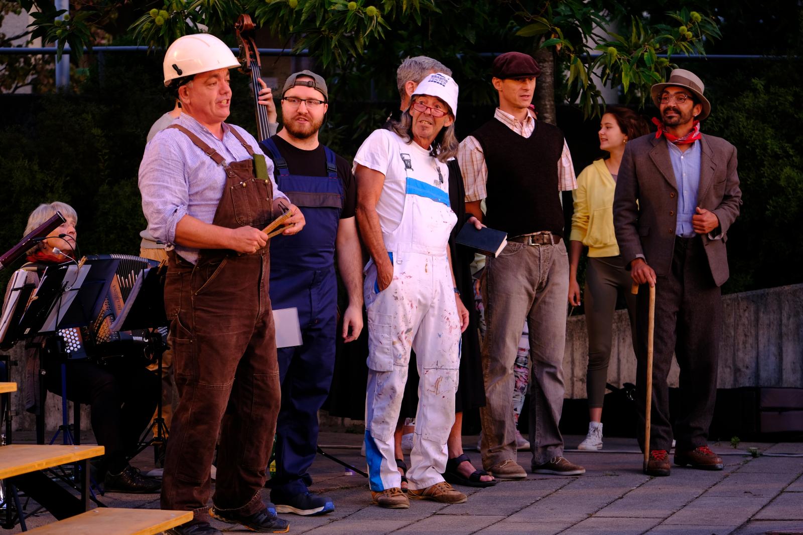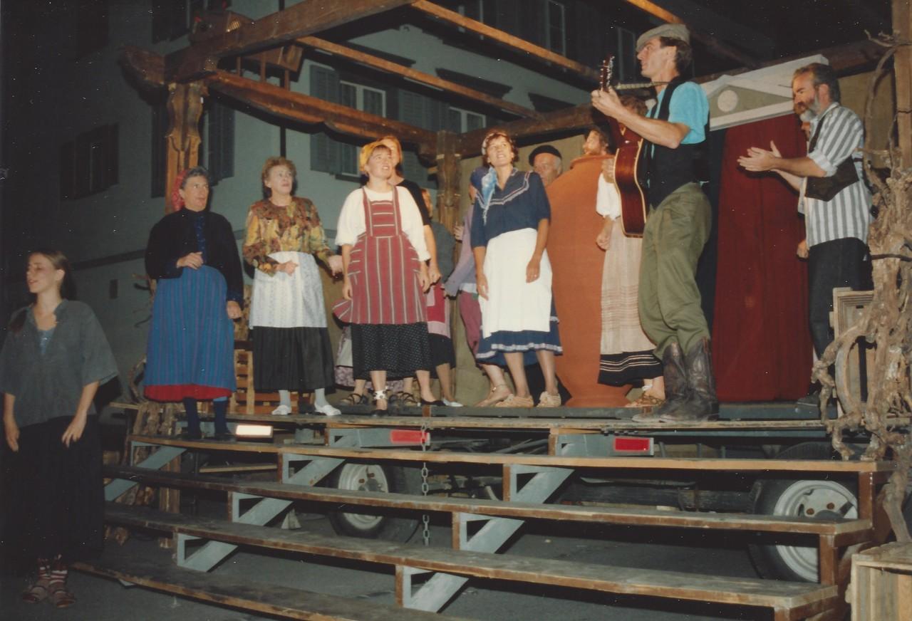 Schon über zwei Jahre sind seit der letzten Tournee vergangen. Wir dürfen dankbar und voller Glücksgefühle auf eine sehr schöne und erfolgreiche Tournee zurückblicken. Obwohl wir drei Mal wetterbedingt nicht spielen konnten, sind die anderen Aufführungen in bester Erinnerung geblieben, sei es auf einem rappelvollen Platz vor dem Verrucano (nachdem der Regen 2 Stunden vor Aufführungsbeginn aufgehört hatte), einer wunderbaren Abendstimmung auf dem Lindenplatz in Pfäfers (bevor am Tag danach der langanhaltende Regen kam) oder die saunaähnliche Wärme im Werkhof in Walenstadt. Jeder Ort war speziell und schön auf seine Weise.